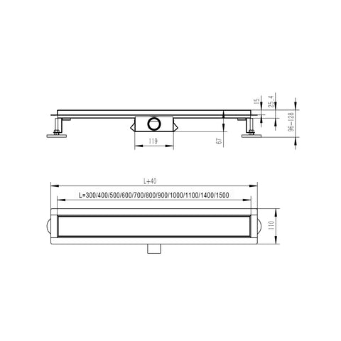 SONNI Duschrinne Edelstahl flach 2in1 befliesbar Badezimmer Bodenablauf Duschablauf Abfluss 30-150CM