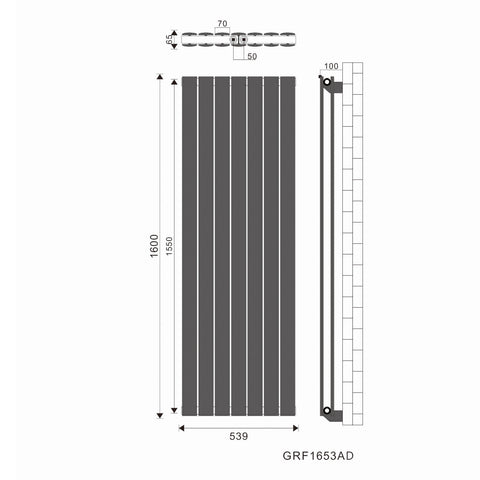 SONNI Flach Heizkörper Paneelheizkörper Wandheizung Mittelanschluss 1600*539mm Anthrazit ohne/mit Mutiblock