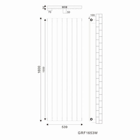 SONNI Flach Heizkörper Paneelheizkörper Wandheizung Mittelanschluss 1600*539mm Weiß ohne/mit Mutiblock