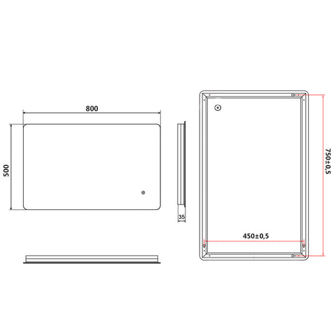 SONNI Badspiegel Lichtspiegel LED Spiegel Wandspiegel mit Touch-Schalter 80 x 50cm kaltweiß IP44 energiesparend