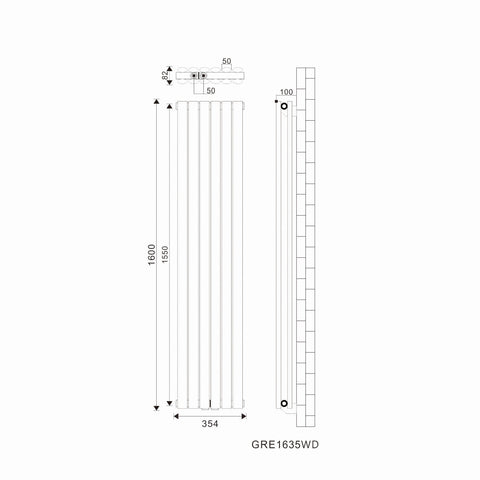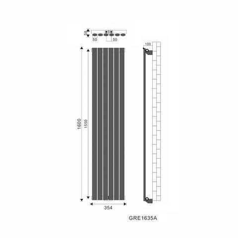 SONNI Badheizkörper Design Röhren Heizkörper Oval Paneelheizkörper Vertikal Mittelanschluss Doppellagig 1600*350mm Antrazit ohne/mit Mutiblock