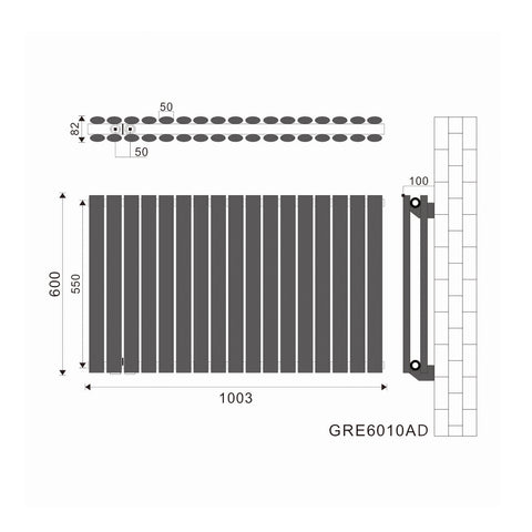 SONNI Röhrenheizkörper Mittelanschluss Wandheizkörper 600*1003mm Doppellagig Anthrazit ohne/mit Mutiblock