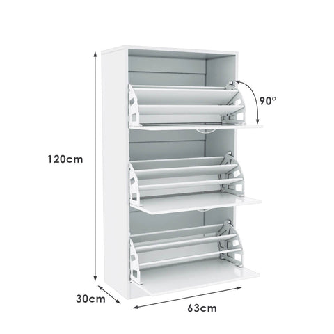 SONNI Schuhschrank 3 Fächer Schuhkipper Schuhregal Regal weiß Schuhkommode Kommode