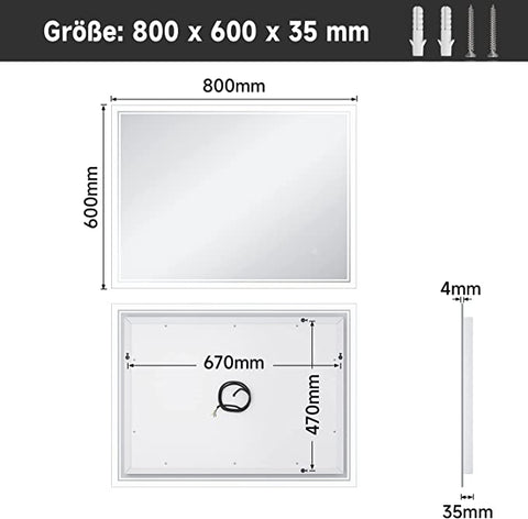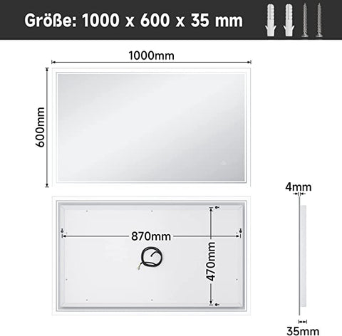 - Touch-Schalter mit Memory-Funktion: Durch die intelligente Memory-Funktion bleiben die letzten Einstellungen nach dem Einschalten des Badezimmerspiegels erhalten.