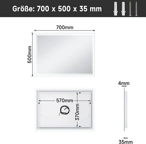 SONNI Badspiegel mit Beleuchtung Beschlagfrei LED Badspiegel mit Touchschalter kaltwei IP44 Wandschalter