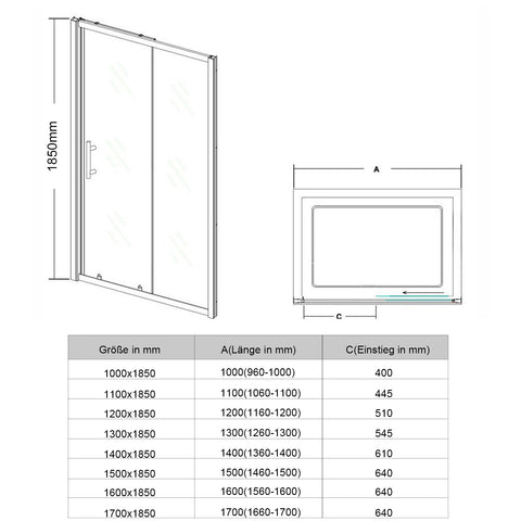1700mm(1660-1700mm) - Der Preis versteht sich für die Duschabtrennung ohne Dekoration.