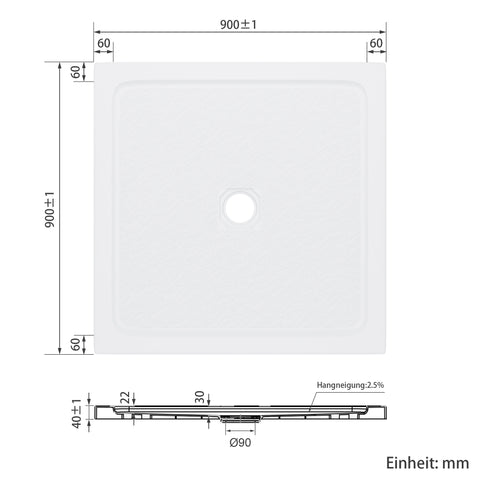 SONNI Quadratische Form Duschtasse- mit flachem Design, Rutschfeste Duschwanne aus, Material SMC, Mittige Entwässerung, inklusive Ablaufgarnitur