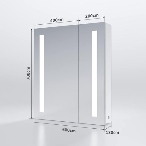 SONNI Spiegelschrank Bad mit Beleuchtung 70 x 60 cm IP44 Wasserciht Edelstahl LED doppeltürig Badezimmerschrank, mit Steckdose und Kippschalter für Badezimmer